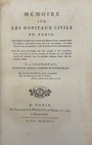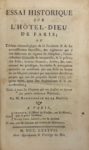 GARZONI (Thomas). L'Hospital des fols incurables où sont Réduites de point en point toutes les folies ou les maladies d'esprit tant des hommes que des femmes... Paris, Julliot, 1620 ; in-12, veau ép. – RONDONNEAU DE LA MOTTE. Essai historique sur l'hôtel-dieu de Paris... Paris, L'auteur et Nyon, 1787; in-8, veau de l'ép. – RECUEIL d'édits, déclarations, arrests et ordonnances, Concernant l’Hopital-Général, les Enfants Trouvez, le Saint-Esprit et autres maisons y unies. Paris, Thiboust, 1745 ; in-4 veau de l'ép. – STATUTS et Reglemens... de l'Hopital général de la charité de Marseille. Marseille, Brébion, 1713, in-12, veau de l'ép. – REGLEMENS de l'Hospital de la Charité de Lyon. Lyon Cutty, 1808 ; in-4, cart. de l’époque, non rogné. Relié à la suite : Règlement pour l'exercice de la médecine et de la chirurgie à l'Hospital Général de La Charité à Lyon. Id., 1816 – CLAVAREAU. Mémoire sur les hôpitaux-civils de Paris. Paris, Prault, 1805 ; in-8, veau vert avec riche décor, tr. dor. (Bozérian) Planches dépliantes. Très bel exemplaire sur grand papier, relié par Bozerian – DAGIER (E). Historie chronologique de l'Hopital Général de Grand Hotel Dieu de Lyon. Lyon Rusand, 1830, 2 vol. in-8, veau havane, décor romantique à froid sur les plats, tr. dor. (Rel. de l'ép.)
