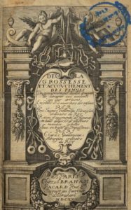 7) DUVAL (Jacques). Des hermaphrodites accouchemens des femmes et traitement qui est requis pour les relever en santé et bien élever leurs enfants. Rouen, David Geuffroy, 1612 ; in-8, vélin de l'époque – 8 ff., 447 pp., 5 ff. Portrait au verso du titre et 4 illustr. sur bois in-texte. Krivatsy 3586. Trous de vers marginaux sur tout le volume. «Cet ouvrage fut saisi par arrêt du Parlement du 4 avril 1612 et la vente en fut suspendue » Frère I. p 415.