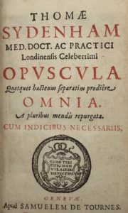 - SYDENHAM (Th.) Opuscula quotquot hactenus separatim prodiere omnia. Genève, Tournes, 1684 ; in-12, veau de l’ép. autre exemplaire sans le portrait avec à la suite : Epistolae responsoriae duae a Th. Sydenham M. d. prima de morbis epidemicis ab anno 1675 – 1680... G., Tournes, 1683.