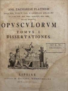 PLATNER (Johann Zacharias) — Opusculorum tomus I Dissertationes .- Tomus II Prolusiones