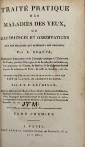SCARPA (Antonio) — Traité pratique des maladies des yeux ou expériences et observations sur les maladies qui affectent ces organes. Traduit de l'italien sur le manuscrit, sous les yeux de l'auteur et augmenté de notes par J. B. F. LÉVEILLÉ.