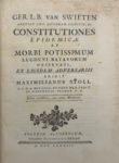 Joint : du même, Constitutiones epidemicae et morbi potissimum Lugduni Batavorum observati... edidit Maximilianus Stoll. Genève, Soc. Bibliopol., 1783 ; in-4, veau de l’époque, dos orné.