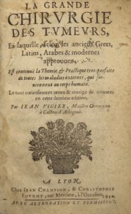 VIGIER (Jean) — La grande Chirurgie des Tumeurs - La grande Chirurgie des ulcères - Troisième partie [des œuvres chirurgicales] en trois traités : Manuel anatomique, Des medicamens, de la Peste.