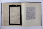 Exemplaire truffé de pages de notes et d'une longue lettre autographe signée de John Antoine NAU datée du 30 novembre 1909 où il parle de la Corse de façon nuancée, où il est malade et manque de soleil. Reliure in-8 plein papier bleu à la bradel, sur le premier plat une carte colorisée de la Corse contre-collée, avec dans les coins les armes d'Ajaccio, une vue du port, Napoléon et Paoli, dos lisse, pièce de titre sur cuir noir à peine éclairci, lettrines or.