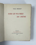 Paul DROUOT : Sous le vocable du Chêne. Chez Dorbon Aîné Paris 1910. Édition originale. Envoi autographe signé “pour André Gide avec toute l'émotion que suscite en moi le souvenir de mes lectures de la Porte étroite”. Truffé d'une carte...