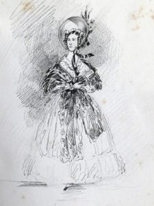 80 feuilles illustrées de un ou plusieurs dessins chacune (4 avec quelques rehauts d'aquarelle), plusieurs datés de 1836, tous à la mine de graphite : croquis caricaturaux pour la plupart, souvent légendés, de grandeurs variées, figurant des dames endimanchées, hommes costumés, quelques scènes de mendicité ou pauvreté, un paysage avec ruines...