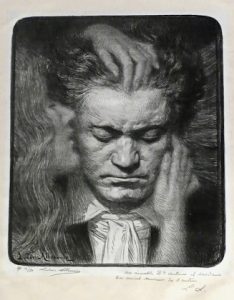 15 sujets divers : steeple-chase, caricature, Beethoven..., 19e-20e siècles. Techniques et formats divers, moyens et grands. En 9 feuilles volantes et 6 sous passe-partout, vitre et cadre.