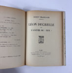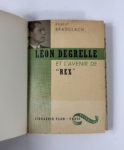 Robert BRASILLACH : Léon Degrelle et l'avenir de Rex. Librairie Plon Paris 1936. Édition originale. Pas de grand papier annoncé. Envoi autographe signé “à M. Albert Doll en sincère hommage”. Reliure in-8 à la bradel, demi maroquin crème...