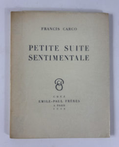 Francis CARCO : Petite suite sentimentale. Chez Emile-Paul Frères Paris 1936. Edition originale. L'un des ex. hors commerce, celui-ci sur papier de tête : Japon. Envoi autographe signé “à toi, mon vieux Dig, en souvenir des belles années,...