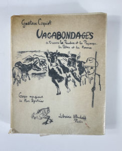 Gustave COQUIOT : Vagabondages à travers la peinture et les paysages, les bêtes et les hommes. Librairie Ollendorf Paris 1921. L'un des 300 exemplaires sur Vélin pur fil, seul grand papier, celui-ci n°79. Illustré des croquis marginaux de Henri...