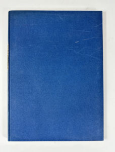 papier bleu, dos lisse, pièce de titre sur cuir noir avec petites traces de frottements, coiffe légèrement arrasée.