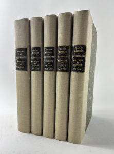 lettrines or, relié sans les couvertures, reliure signée Gauché. Joint un cinquième volume relié à l'identique : Supplément au dictionnaire politique et critique. Ensemble d'articles contre-collés et une page tapuscrite avec petites corrections manuscrites d'Abel Bonnard.