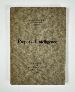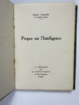 Paul VALERY : Propos sur l'intelligence A l'enseigne de la porte étroite Paris 1926. Édition originale. L'un des 520 ex. sur Arches, celui-ci l'un des hors commerce, troisième papier. Envoi autographe signé “à mon cher Miomandre, pour allumer...