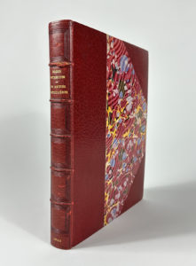 “Poètes de sept ans”, je présente ces poètes de douze et de quatorze ans, avec l'hommage respectueux et son admiration”, faisant référence aux illustrations des textes de Rimbaud paru chez GLM en 1939. Reliure in-8 demi maroquin rouge à coins, dos à 5 nerfs, caissons à encadrement de liserés noirs, lettrines or, et date en pied, traces de frottements sur les deux nerfs supérieurs et la charnière du premier plat, tête dorée, couvertures et dos conservés, reliure signée Semet et Plumelle.