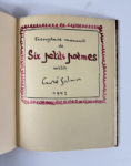 André SALMON : Six petits poèmes “Exemplaire manuscrit de six poèmes inédits” signé et daté 1942 par l'auteur. 6 pages in-8. A la fin un dessin légendé “rêve de face, oeil de profil” représentant un oeil contre-signé “AS”....