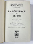 Maurice BARRES - Charles MAURRAS : La république ou le Roi. Correspondance inédite (1888-1923) Plon Paris 1970. Édition originale, pas de grand papier annoncé. Deux volumes. Le premier exemplaire truffé d'un “Entretien d'Agathon et de...