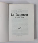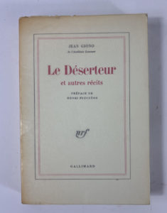 Jean GIONO : Le déserteur et autres récits. Gallimard Paris 1973. Édition originale. L'un des 80 ex. sur vélin, celui-ci n°50, deuxième papier après 37 hollande. Broché in-8, très bel état.