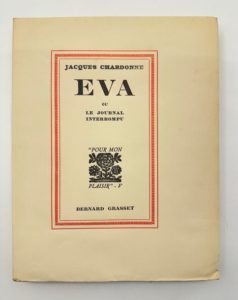 CHARDONNE Jacques : Eva ou le journal interrompu. Grasset Paris 1930. E.O. L'un des 112 ex sur pur …