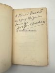 CHARDONNE Jacques : Attachements. Stock Paris 1943. E.O en partie. L'un des 200 ex sur alfa, seul grand papier. Envoi à Edouard BOURDET. Broché in-12, manque la dernière de couverture et petites rousseurs éparses. Rare édition revue et complétée de Chroniques privées au regard de la guerre