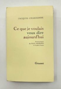 CHARDONNE Jacques : ce que je voulais dire aujourd'hui. Grasset Paris 1969. E.O. L'un des 44 ex …