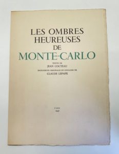COCTEAU Jean : Les ombres heureuses de Monte-Carlo. Chez l'auteur Paris 1947. Edition originale. …