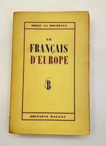 DRIEU LA ROCHELLE Pierre : Les Français d'Europe. Ed. Balzac Paris 1944. E.O. (pas de grand papier). Broché in-12, dos légèrement assombri. Rare ouvrage car pilonné dès sa parution au moment de la Libération de Paris, seul quelques exemplaires furent préservés