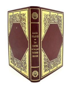 FRANCE Anatole : Les contes de Tournebroche. Editions René Kieffer Paris 1924. Première édition illustrée par Sylvain Sauvage. L'un des 20 exemplaires sur Vélin à la cuve. Bien complet de la suite des illustrations en deux états. Reliure in-8 plein maroquin rouge, imposant décor floral or sur les plats, dos lisse à décor or, couvertures conservées (reliure signée Kieffer)