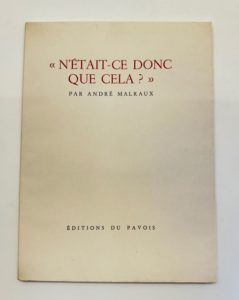 MALRAUX André : N'était-ce donc que cela ? Éditions du Pavois Paris 1946. E.O. L'un des 80 ex. …