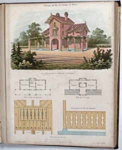 (Architecture & Chemin de fer) - CLUYSENAER, Jean-Pierre.- Bâtiments des stations et maisons de garde. Deuxième édition. Bruxelles, B. Van der Kolk, 1860. In-f° : 14-[2] pp.; 33 h.-t. (manque important au coin sup. du titre mais sans manque de...