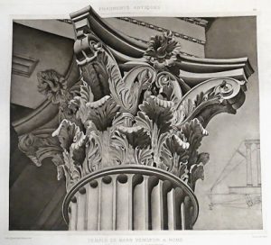 Édition originale et premier tirage des 200 splendides héliogravures issues de l'atelier Chauvet, quelques-unes en sépia, figurant les grands monuments principalement de Grèce et de Rome. Précédées par des tables explicatives de l'archiviste Georges Daumet (1870-1918). L'architecte et peintre français d'Espouy (1854-1929) reçut le Prix de Rome en 1884 et séjourna à la Villa Médicis de 1885 à 1888. Il fut nommé professeur de peinture ornementale, sa spécialité, à l'École nationale des Beaux-Arts en 1895. Exemplaire sur papier vélin. # pas dans Cicognara, Kat. Berlin, Fowler, Brunet. Joint : BAIARDI, Ottavio Antonio.- Catalogo degli antichi monumenti dissotterrati dalla discoperta città di Ercolaneo [...]. Napoli, nella regia stamperia di S.M., 1757, gr. in-f° plein veau de l'ép. (us., mouill., plat sup. restauré...).