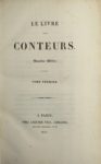 Le Livre des conteurs comprend trente-sept nouvelles inédites de Charles Nodier, Alexandre Dumas, Jules Sandeau, Eugène Sue, Frédéric Soulié et d'autres. Les quatre premiers tomes affichent une mention de deuxième édition car ils ont d'abord paru à l'adresse d'Allardin en 1832-1833. Les cinquième et sixième tomes sont en premier tirage.