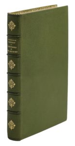 Paris, Alphonse Lemerre, 1871. In-12, maroquin vert, dos orné de fleurons dorés, dentelle intérieure, doublure et gardes de soie verte, tranches dorées sur témoins, couverture, chemise et étui gainés de maroquin vert (J. Faki – L. & C. Berthaux doreur).Édition originale, dédiée à Paul Arène.