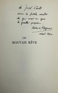 Exemplaire de José Corti, avec un envoi autographe signé d'Albert Béguin, « avec la fidèle amitié de qui n'est ici que le gratte-papier », daté Noël 1950.