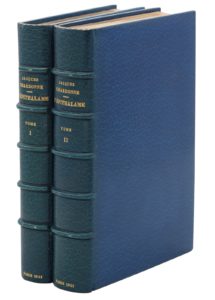 Paris, Librairie Stock, Delamain et Boutelleau, 1921. 2 volumes in-12, maroquin bleu janséniste, jeu de filet sur la bordure intérieure, doublure et gardes de soie gris perle, doubles gardes, tranches dorées sur témoins, couverture et dos, étuis bordés (E. Maylander).Édition originale du premier ouvrage de l'auteur.