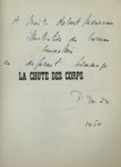 Paris, Julliard, 1948-1951. 3 volumes in-12, brochés. Édition originale des trois tomes de la trilogie en tirage de tête : I. Les Grandes familles (1948) : un des 100 exemplaires sur chiffon d'Annonay, seul grand papier (n°100). – II. La Chute des corps (1950) : un des 120 exemplaires de tête sur pur fil Johannot (n°64). Envoi autographe signé de l'auteur au collectionneur belge Robert Moureau (1907-1983), « illustration du barreau bruxellois », daté 1950. – III. Rendez-vous aux enfers (1951) : un des 120 exemplaires de tête sur pur fil Johannot (n°92).