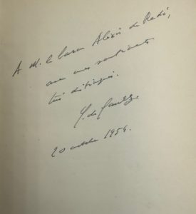 Envoi autographe signé à l'esthète Alexis de Redé (1922-2004) : à M. le baron Alexis de Redé, avec mes sentiments très distingués, Ch. de Gaulle, 20 octobre 1954.