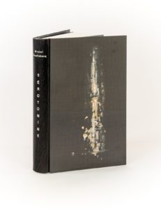 Fascinante reliure contemporaine de Nathalie Berjon, revêtement ultramoderne pour Sérotonine, associant des matières nouvelles issues des technologies de l'aéronautique et du sport de haut niveau.