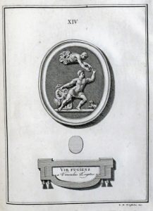 Édition originale posthume de ce bel ouvrage de Gori (1697-1757), antiquaire florentin et prévöt du baptistère San Giovanni. Le premier volume se compose du catalogue des gemmes de la collection de Joseph Smith (c. 1682-1770), consul britannique à Venise de 1744 à 1760; le second d'un historique de la glyptique. Illustré de 100 planches hors texte et de 2 pleines pages. Texte orné de bandeaux, culs-de-lampe et initiales historiés ou ornementés; titres, avec vignettes figurant Minerve, et dédicace gravés. Exemplaire sur grand papier. # Brunet II-1671 ; # Graesse III-120. ▲ Provenance : Jacob Maximilian (ex-libris armorié); William Boyne, 1860 (id.).
