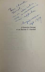 Envoi autographe signé : Pour Claude Nicot, mon admiration, ma reconnaissance, mon affection, Eugène Ionesco, sept. 1959. L'acteur Claude Nicot (1925-2003) venait de créer le rôle principal de Tueur sans gages de Ionesco au théâtre Récamier.