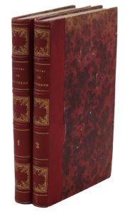 Paris, Pougin, 1838. 2 volumes in-8, demi-chagrin rouge, dos orné, tranches mouchetées (Reliure de l’époque).Traduction nouvelle de Théodore Toussenel, ornée de huit figures lithographiées hors texte.