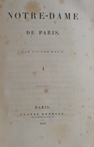Notre-Dame de Paris. Paris, Renduel, 1836. 3 volumes in-8, demi-veau rouge, dos richement ornés, tranches marbrées (Reliure de l'époque). Édition illustrée d'un frontispice et de 11 figures hors texte d'après Johannot, Raffet, Boulanger, Rouargue, Rogier, etc. Jolies reliures romantiques. Fortes rousseurs.