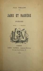 « Jadis et Naguère, comme l'indique son titre, est composé de pièces retranchées des précédents recueils de Verlaine. Vers de jeunesse, dédaignés lors des Poèmes saturniens, une assez forte partie de Cellulairement déjà mis à contribution par Sagesse et enfin un volume mort-né du poète : Les Vaincus » (Montel). Le recueil contient notamment le célèbre poème Crimen amoris, ainsi qu'Art poétique, publié ici pour la première fois, qui contribuera à faire de Verlaine un des maîtres du mouvement symboliste.