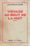 Voyage au bout de la nuit. Paris, Denoël & Steele, 1932. In-12, broché. Réimpression en offset de l'édition originale réalisée par l'Imprimerie française de l'Édition, avec mention de 104e édition sur la couverture et sans les feuillets d'annonces. Couverture défraîchie, premier plat détaché.