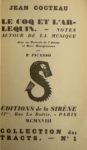 COCTEAU (Jean) — Le Coq et l'Arlequin. Notes autour de la musique.
