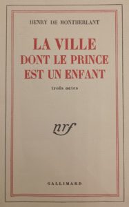 La Ville dont le prince est un enfant. Paris, Gallimard, 1951. In-12, broché, non coupé. Édition originale. Un des 520 exemplaires sur alfa mousse.