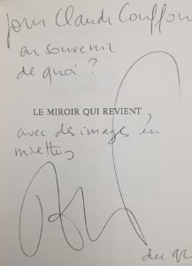 Envoi autographe signé à l'écrivain Claude Couffon.