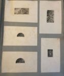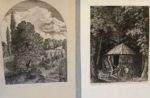 Emmanuel Phelippes-Beaulieux Recueil d'eaux-fortes, 1853-1866, important ensemble d'estampes sous la forme d'un album titré sur le dos, comprenant 4 planches de grand format (pliées, marges maximum 57 x 84 cm), 25 grandes planches (marges maximum 57 x 44 cm) et 8 feuilles de papier gris sur lesquels sont collées différentes planches (entre 2 et 6) de plus petit format, en tout 117 pièces, la grandes planches sur chine appliqué, nombreuses rousseurs claires, reliure très abimée, le plat inférieur manquant. Quelques titres : Aux Croix, 1860 ; La Grande avenue du Buron, 1862 ; Passage de l'Arguillère, 1866 ; Cascade sur le Cens à Sautron, 1854 ; La Chapelle de Notre-Dame-des-Anges à Orvault, 1863 ; La Jeune poitrinaire, 1861, etc. Emmanuel Phelippes-Beaulieux (1829-1874) était un avocat installé près de Nantes, dans la propriété familiale des Croix à Sautron. Passionné par les paysages de sa région, il grave entre 1853 et 1871 plus d'une centaine de planches. Ces eaux-fortes n'étaient pas destinées à l'édition et les tirages sont très rares. Un album de son œuvre est conservé au musée d'Arts de Nantes. Notre ensemble de 117 pièces constitue probablement quasiment l'intégralité de l'œuvre complet de l'artiste, habituellement décrit comme composé de 115 pièces : ici les planches sont numérotées au crayon de 1 à 122 mais il manque les planches 10 et 60 à 63.
