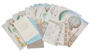 GASTRONOMIE.— Ensemble de 12 menus à bord d'avions d'Air France lors de voyages officiels du président Valéry Giscard d'Estaing. 1978-1980. In‑8 & in‑4, couvertures illustrées. Voyages au Mexique, au Brésil, dans le Pacifique, en URSS, aux Antilles et à Berlin. Voyage à bord d'une caravelle du GLAM. Vols Singapour-Nouméa, Abu Dhabi-Singapour, Paris-Moscou, Paris-Kigali, etc. Joints 7 menus de première classe sur Air France (Paris-Nice, Paris-Manille, route polaire Paris-Tokyo, Los Angeles-Paris, Paris-Abu Dhabi, Hong Kong-Paris, etc.)