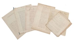 DOCUMENTS CHIFFRÉS.— Ensemble de 4 lettres et 10 pièces manuscrites des xviiie et xixe siècles. Détail : Lettre signée de Mgr de Bernis (1715-1794) à l'ambassadeur de France au Danemark, avec transcription en français. Versailles, 29 avril 1758. 5 pp. in‑4.- Lettre signée de Nicolas Desmarests de Maillebois (1648-1721), avec transcription en français pour moitié. Marly, 4 juin 1710. 3 pp. in‑4.- Lettre de Georg de Starembert. 1758. 2 pp. in‑4.- Lettre signée du cardinal Philippe-Antoine Gualterio (1660-1728), avec transcription en italien. Rome, 19 avril 1718. 5 pp. in‑4.- 10 pièces in‑8 et in‑12, 1813-1820, au recto de pièces imprimées.