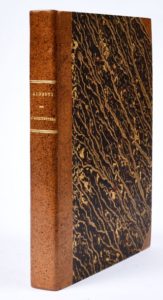 ALBERTI (Leon Battista). L'architettura… tradotta in lingua fiorentina da Cosimo Bartoli… con la aggiunta de disegni. Venise, Francesco Franceschi, 1565. In‑8, 16 x 22 cm, 402pp. (chiffrées 404), 14ff., 2pl., reliure moderne en demi-veau fauve moucheté à coins, dos lisse. Première édition petit in‑quarto de la traduction du philologue et mathématicien Bartoli (1503-1572), dédiée à Cosme de Médicis. Illustré de 3 planches dont une repliée, de nombreux croquis dans le texte, d'un beau titre allégorique et d'un portrait de l'auteur en tête, le tout gravé sur bois. Bon exemplaire. Pâle mouillure marginale dans la seconde moitié du volume et importante mouillure aux feuillets de table. Quelques feuillets salis en marge, pâles piqûres au début du volume. Titre court en tête sans manque, légèrement sali. Signature ancienne grattée en bas du titre.
